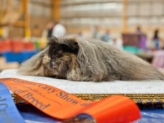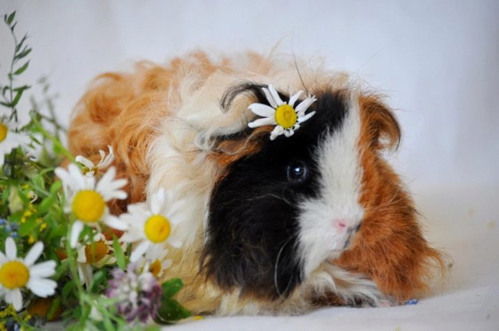Such guinea pigs are also called royal in a different way, and all thanks to their beautiful and curly hair. A rosette that resembles a crown adorns their head. The fur is very long, so the owners often have to cut their pets in the summer. Their color can be both white and gray, and also combine several shades at the same time.