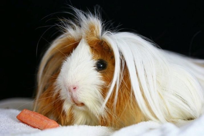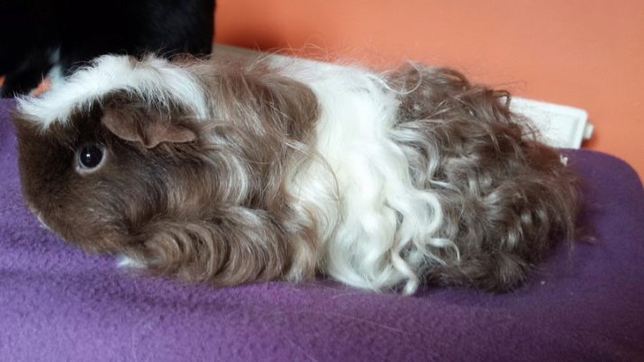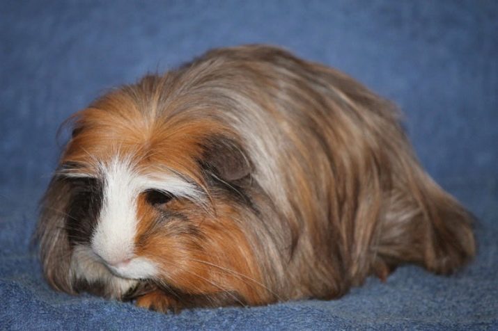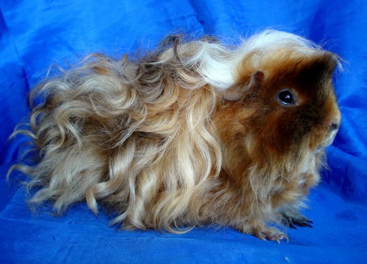 This is the most beautiful breed of long-haired guinea pigs, and she appeared as a result of crossing two breeds: Sheltie and Royal (Rex). Their curly hair grows away from the head. In addition, it cascades all over the back from the parting, framing the head without long hair. The length of the hairs can reach up to 15 centimeters.