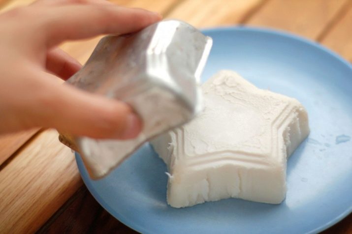 When the consistency of the soap mass becomes 90% uniform, the upper container is removed, its contents are mixed again and laid out in forms (or additional ingredients are added as desired). To freeze the soap blank in the molds should be in a dry place. It is impossible to exhibit forms in the open sun, since direct sunlight will adversely affect the appearance of future soap.