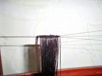 Pour water into the dishes and put the hair. Put the container on the right and left of the back (based on your individual preferences). Put another chair so that sitting on it, you will be facing the back of a chair with stretched threads. Separate 10-13 hairs from the prepared hair, spread them in water along the entire length with your fingers, so that they are easy to work with.Before you start to weave your hair along the threads, you need to draw an approximate diagram.