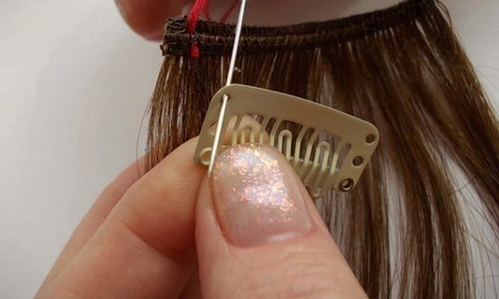 To fix the finished product on the head, hair clips need to be sewn to the tresses.