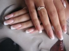 After that, the surface is again coated with a primer, after which a white acrylic pea is laid directly on the mold, which is a mixture of monomer and acrylic powder. With the help of liquidation and a brush, an extreme arc is drawn. A pink pea of acrylic is placed next to the cuticle.