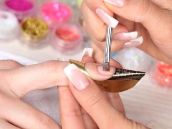 Forms exist upper and lower, and the former are most often recommended for beginners. When using the upper forms, acrylic is placed on the recess of the substrate, and then pressed against the prepared nail. When using lower forms, the substrate is immediately fixed under the nail.