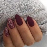 The most profitable velvet coating looks on the nails of a classic oval shape. As for color, it is preferable to choose saturated deep shades. In combination with nude makeup, such a manicure will create a stunning image.