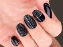 The option with decorating the nail hole with rhinestones of different sizes will look good.