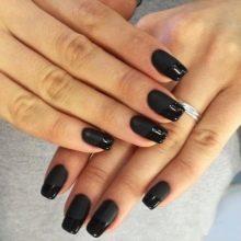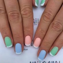 A universal option suitable for nails of any length is a French manicure or jacket. The matte finish on short nails will look more effective if you add glossy inserts and elements (a triangle or a hole). On long nails, you can give free rein to imagination - here any variations of the French are appropriate, from classics to fan-french.
