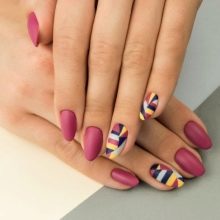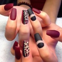 The peak of the direction is a combination of two coating textures. Mat and gloss will create a unique design of your nails. Geometric or graphic patterns on nails are also popular this season.
