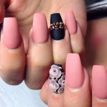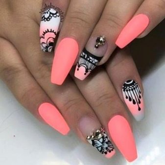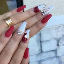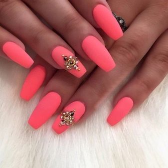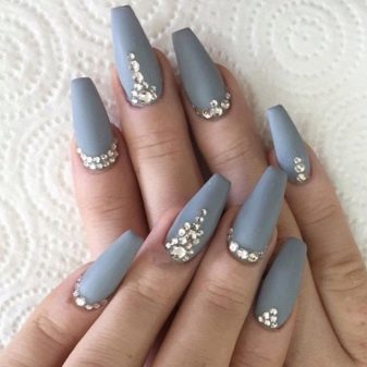 Matte coating, provided a suitable length, can not be spoiled with rhinestones. But it is important to adhere to the rule of moderation - do not completely fill the nails with rhinestones, they should be no more than 20% of the surface of the nails.