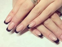 - Not bad French jacket with a frame. Her fingernail is framed around the perimeter. Usually, darker varnishes are chosen for this, contrasting with the other colors on the nail plate.