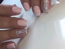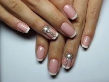 - Such a manicure with rhinestones or small colorful pebbles looks very beautiful. Rhinestones are often combined with sparkles. A similar design looks impressive, but here we must be careful not to overdo it with brilliance.