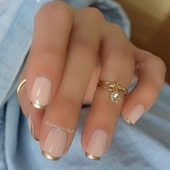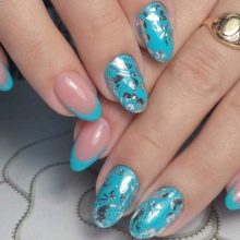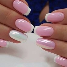 French can be supplemented with the edges of nails coated with a metal. The mirror insert will make the design more modern and even futuristic. Often, French manicures are combined with moonlight. However, here you need to be careful so that the nails do not get clumsy.