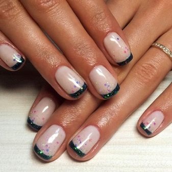 - French millennium. With such an interesting manicure, the edge of the nail is decorated with decorative sequins and sand. In this case, it is important to keep in mind that no matter what decor you choose for decoration, it should be quite dense. Make sure that the coating is not transparent, otherwise it will look cheap. This type of jacket is often done on special forms, putting into practice modeling compositions with delicate sparkles.