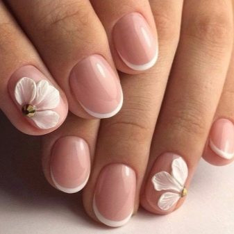 Rounded marigolds are trending this season. Natural manicure in white and pastel colors is still relevant. You can draw beautiful borders with which you can get a little "play" with the lines of the French "smile". On the nails can be present drawings - "ghostly stripes" that create the effect of glass.