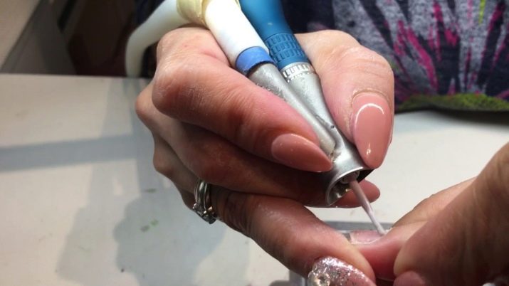 - First of all, you need to do the top layer if the length of the nail has already been previously removed. In order not to hurt the fingers that will hold the tool, it is recommended to put a fingertip on them or glue them temporarily with a plaster. When removing material, you should regularly remove dust from the plate to visually determine at what stage the work is: for this it is worth using a brush, as well as acetone.