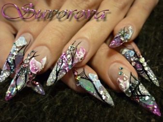The process of laying out the material may be delayed when using colored media. In this case, the desired design is immediately obtained on the nail. Professionals often make colored acrylic extensions in order to reduce the overall procedure time.