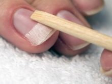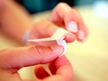- Prepare patches. To do this, use a piece of thin cloth, a special rag tape or tea bag. The size of the first patch should be slightly larger than the crack parameters. The second should correspond to the size of the nail plate.