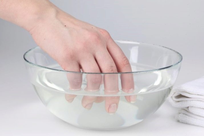 If the skin was injured when the nail plate was broken, then the wound should be healed first. To do this, cut the nail along the crack line, treat the dermis with an antiseptic. Next, stop the bleeding. Press the wound with a cotton pad and hold for a few minutes. Put your finger first in cold water and hold there for 15 minutes. This will help reduce pain. Then move your finger in a warm solution of table or sea salt (add 1 teaspoon of salt to 1 liter of water). This procedure will speed up the drying of the wound.