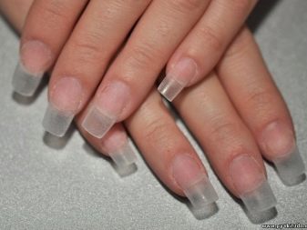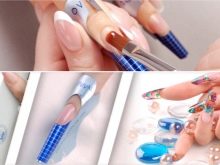 Professional nail specialists will help you choose the technique for building and create a manicure from acrylic or gel. You can apply the finished product to the shape of the nails or do the procedure immediately on the plate, which is acceptable to owners of brittle nails. This technology is not suitable for independent execution, since there are many subtleties of the process.