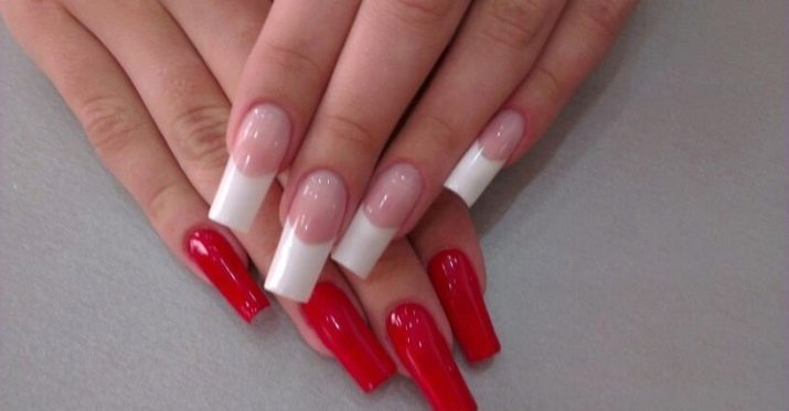 - Arched nail extensions are popular both in classic French manicure and with full coverage, for example, in saturated red.