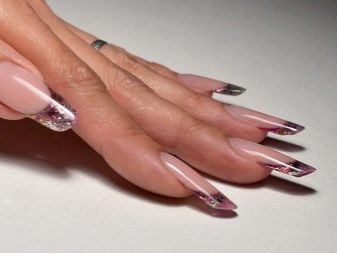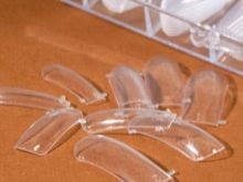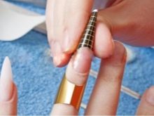 The presented methods involve the use of special templates and elements made of plastic.For example, tips are plastic “tips” of nails. They come in various shapes and lengths. They are attached to a natural nail using special glue. Then the tips are given the desired shape and carefully polished in order to equalize with the “native” nail plate. Then the nails are covered with glue and sprinkled with special powder. Tips are suitable for owners of flat and thin plates with increased fragility.