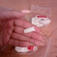 - The last variety is the tips for almond shape. These products allow you to quickly build the correct almond shape. They are characterized by different lengths, whether or not they have a contact zone. Their cost is approximately the same as the cost of blanks for stylet (about 150 rubles for 50 pieces).