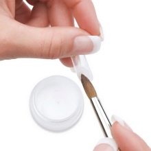 - acrylic powder is combined with the monomer, forming a creamy mass, a small ball is collected and distributed on the nail;