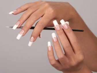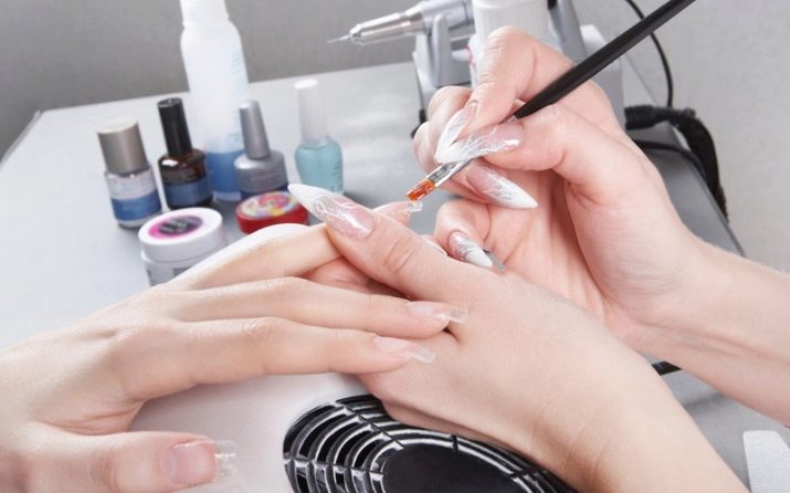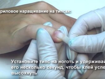 Acrylate is considered a quick-drying agent. It allows you to get a quality result without a lamp. Such nails are distinguished by their natural appearance and thickness, as well as elasticity. When working with acrylic, it is advisable to ventilate the room, since the material has a specific smell. In addition to tips, nippers and a special tool for dissolving acrylic may be needed in the work. In addition, it is desirable to stock up on a small container for dissolving acrylic.