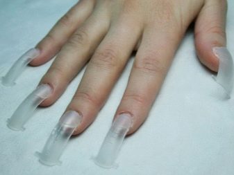 Tips are made of plastic, nylon and polyflex. Each type of material has its own nuances. For example, plastic products are considered quite durable and preferable in work. Plastic is resistant to temperature, it is easy to wash, it is convenient in the process of building. If you need to build up nails with gel, then it is better to choose options from polyflex. Such solutions are quite flexible, they are resistant to acetone. As for the nylon varieties, they are not suitable for beginners, since they can be problematic in fixing, while it is worth noting that nylon keeps its shape well.