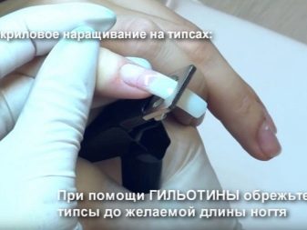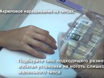 As for the acrylic extension method, here you will have to work faster, while trying not to make mistakes. The acrylate will dry itself without any help. In general, the tips themselves may be needed in the work, moreover, of different sizes, special glue for such frames, the tip cutter fixture. Do not do without an antiseptic, which will have to process your hands. In addition, it is worth taking care of the presence of a file with an abrasive of 180/100 grit, napkins without lint, alcohol, a brush to remove dust, cuticle oil.