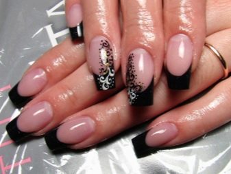 Perform on extended nails can be manicured in different techniques. One of the best solutions would be a French jacket, whether traditional or reverse. You can combine the colors of stackable materials, thereby creating an already ready-made design. If you do not like this option, you can turn to various techniques for nail design. For example, you can paint the nails with matte varnish, and on accents draw lace motifs with glossy material of the same color. The texture game always captivates the eye, such a design is in trend today.