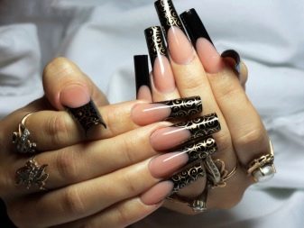 And also in the line there are varieties with a colored background and a finished design. These are, in fact, ready-made solutions, although if you wish, the former can be decorated with some kind of print, and the latter can be simply covered with transparent varnish. In addition, the options can be universal, with a sufficient bend and a large bend. The bend of the frame is necessary so that the extended nails look beautiful and natural.