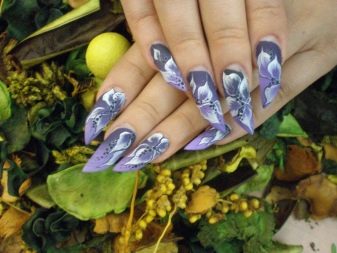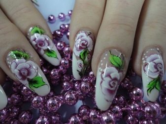 And you can also highlight manicure accents using hand-painted in various subjects and techniques, including watercolor, stained glass and spreading effect. When choosing the watercolor option, the substrate created by the base, pigment and top is buffered to make it rough. After that, on a working background, they draw with water-based artistic watercolor paints. And also for this technique, acrylic paints are also good, which are diluted to the desired consistency with the top.
