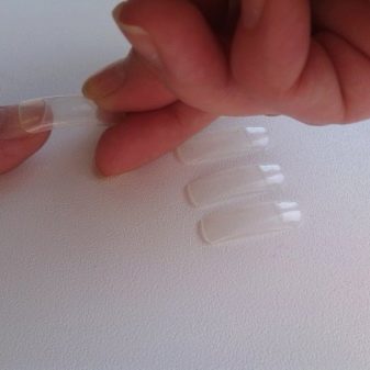 Having treated your hands with an antiseptic (alcohol), perform a hygienic manicure. After all its stages have passed and the nails are properly prepared, they select the correct tip size for each of their plates. In this case, make sure that the contact zone covers less than half the area of the plates.If preparation of the tips themselves is necessary, then they are laid out in order, depending on the selected options, and the edges of the contact zones are sawed.