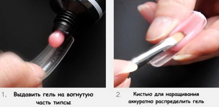 This method is convenient in that the tips are quite convenient to substitute for your nails. In addition, there is no need to glue the nails themselves, cut the material, achieving the desired length. However, in order to fully understand the essence of the process, it is worth watching the video material, which will greatly simplify the work with the gel. The fact is that the gel may not flow properly. Also, a rotary lamp may be needed in operation.
