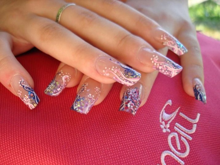 When building gel nails, you can afford various fantasy solutions. For example, colored materials of this type can even be used as a service jacket. However, if there is no special lamp at home, it is worth trying acrylic modeling.