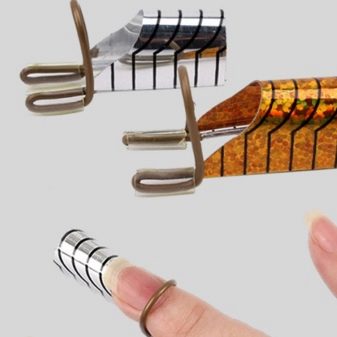 - Reusable forms. These matrices are characterized by high density. They are made of hard plastic, metal. The price tag for such forms is much higher than for the same disposable ones. But due to their repeated use, they pay off not only their cost, but also subsequent applications. Due to the material from which they are made, they are quite strong and do not require quick replacement. They do not deform over time, exclude the gel from getting on the nail in those places where it is not needed. But it is worth remembering that it is necessary to select a reusable matrix exactly under the shape and bends of the nail, because it will not work to “fit” the form, as in the case of disposable ones.