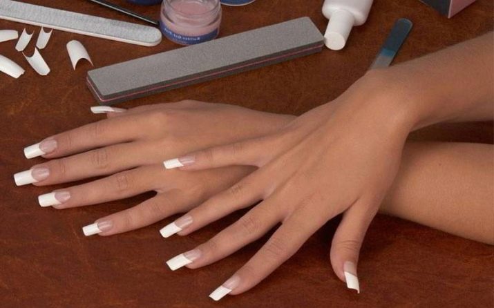 This is a plastic that mimics any shape of a nail plate. They are often confused with invoices, because they are similar in materials, and they are glued to special glue. But the similarity ends here, because so that the tips do not stand out against the background of a natural nail and are not a foreign object at all, they are sanded, wiped off the borders between artificial and natural nails. After that, the desired shape is selected, and a nail is formed using special scissors.