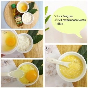 As the name implies, in order to prepare this product, you will need to take yogurt of minimal fat content in the amount of 100-200 grams. A beaten chicken egg and one tablespoon of flaxseed oil should be added to this product. All this must be gently mixed until a homogeneous mixture is obtained, and then applied to the hair from the roots to the ends. Perform the procedure only with a brush. It remains to wait about 30-40 minutes, and then rinse thoroughly.