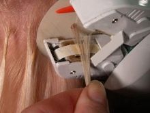 - The very procedure of building. This stage is dependent on the qualifications of the specialist. The area of the head where the extension is made is divided into sectors. A small strand of natural hair is separated and a donor is attached to it several millimeters from the skin. A capsule is brought to the place of contact and pressed to both strands. Then the capsule is heated using Extend Magic. And then, when it hardens, it will get a shade of hair.