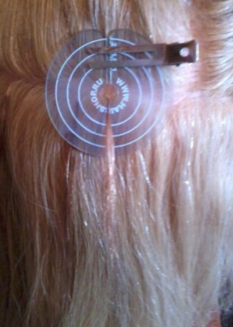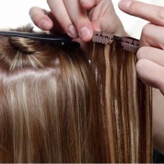 - Another way to build cold use of special clips or small metal balls to the place of attachment of native and false hair. In this case, the clips perform a simple locking function. This method is a bit more time-consuming (although it all depends on the size of the clips and the thickness of the stacked curls), but it is quite resistant to external loads.