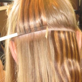 - Extension using tapes. The essence of the tape extension is to fasten relatively large curls of hair to a special tape. The use of this type has such significant advantages as: