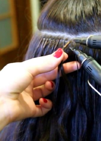 - Italian lengthening. The peculiarity of this type is that special resin capsules are created in the place of bonding of natural and overhead strands.This is a more painstaking procedure and it will require special clamps at the mounting location. This method is considered optimal, since it does not interfere with combing the hair and is able to withstand heavy loads on them.