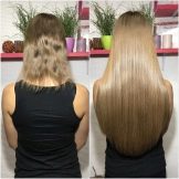 - Another important plus of this procedure is to give the appearance of a lady a more attractive and feminine look. High-quality hair will not only not give out its origin, but will also attract the enthusiastic looks of others to its owner. This is sure to positively affect the self-esteem of the fashionista.