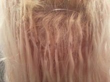 - While the donor strands are wet, the areas where they are fixed become very vulnerable. If at this time you start combing them (even very carefully and carefully), or go to bed with unkempt hair, you can damage not only the extensions, but also your own locks.