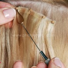 The features of this method are that the donor and their locks are fastened by fixing special small rings, beads or clips, the diameter of which does not exceed a mark of 2-3 mm. Crocheting at a distance of 0.5 cm from the very roots, the hairdresser passes the donor and “native” strands into a ringlet, and then clamps them with special tweezers. Due to this simple attachment, the hair holds very well and reliably, without being exposed to the fatal effects of high temperatures. Since the sizes of the rings are minimal, they are simply not visible in the hair, so the result is a completely natural hairstyle.