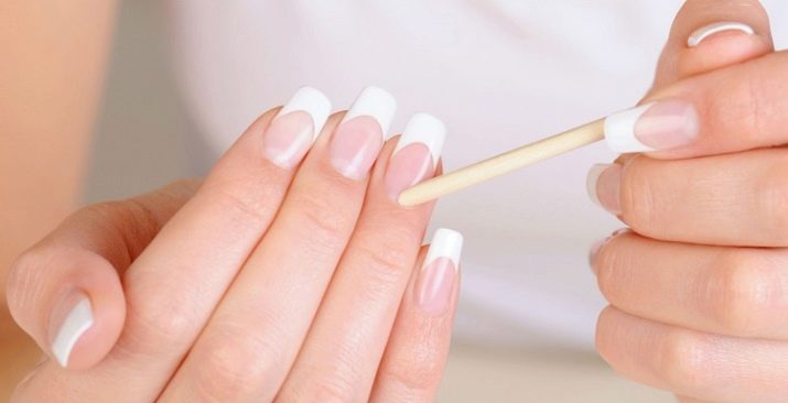 All homework for the period of formation of the natural nail plate will have to be done in strong gloves with fingers of sufficient length. For a while, you should abandon the trimmed manicure, changing it to a more delicate version with a cuticle offset with a wooden stick. If the free time to achieve the goal is about a week, it is worth starting to make gelatinous baths for hands daily and massage.