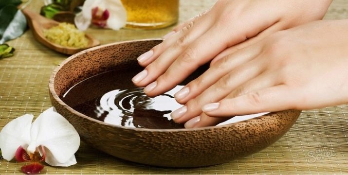 - Iodine-salt baths. If the cause of the slow growth of nails is a lack of minerals, special care will help to fill it. Trays are prepared on the basis of 100 ml of warm water, 4 drops of iodine and 5 grams of sea salt. The hands are immersed in the finished solution so that the mixture completely covers the nail plate. Continue the procedure from 20 to 40 minutes. A series of procedures is continued until iodine begins to stain the nails. This will mean filling in the deficiency of a microelement in the body.