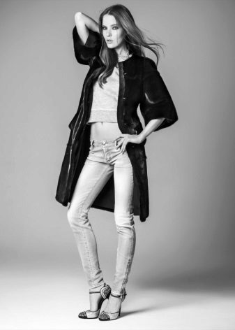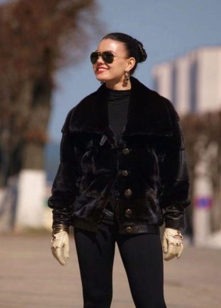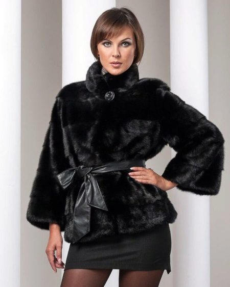 And a mini-skirt is perfect for a fur coat-jacket with a small collar-collar, wide sleeves and a leather belt, knotted bow.