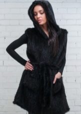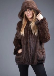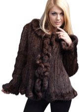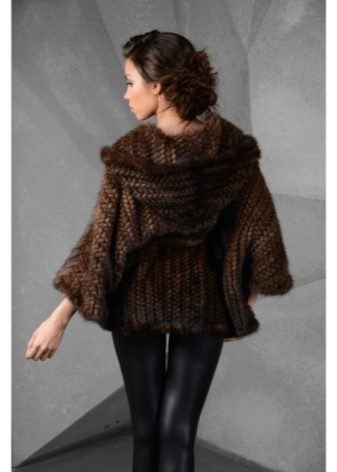 The range of things from knitted mink is quite wide: fur coats, jackets, poncho, scarves, vests, wraps, coats, capes. The structure of the thread allows you to sew products of various styles: from classic to the most extravagant, as well as decorate it with knitted details (belt and cuffs, hood and frill, turn-down collars).