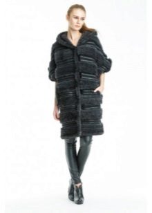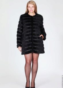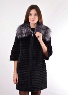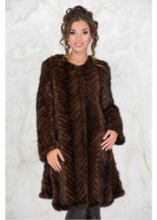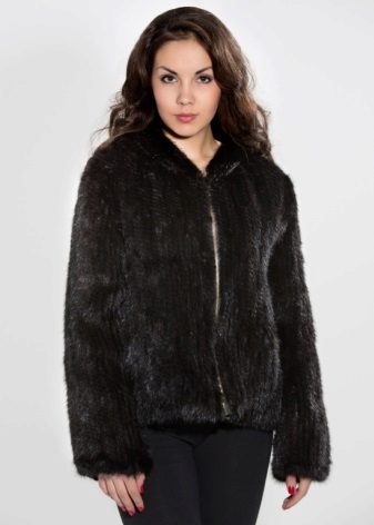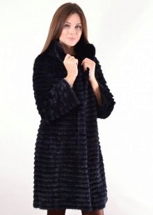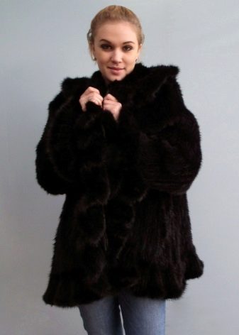 A coat of knitted mink fur, decorated with a wide turn-down collar, looks like a classic coat. An interesting model, decorated with flounces along the edge of the product (especially when the knitted texture of a fur coat contrasts with the smooth mink fur of the flounces). With their help, the thing acquires additional brilliance and dynamics. A knitted mink coat with a collar and cuffs from some other fur (fox or fox) also looks unusual.